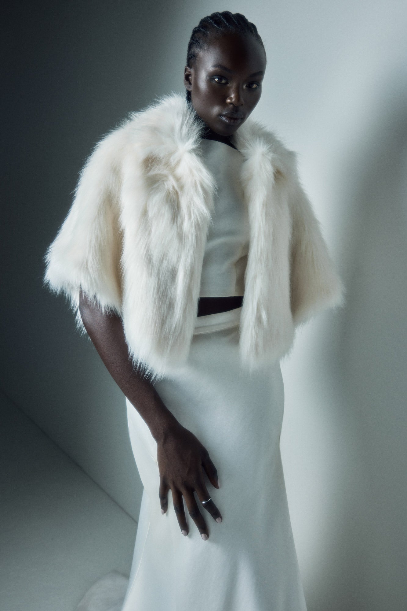 Luxurious and chic, this gorgeous cape is made from the most premium faux fur and features a wide collar with a concealed hook & eye closure in the front.
