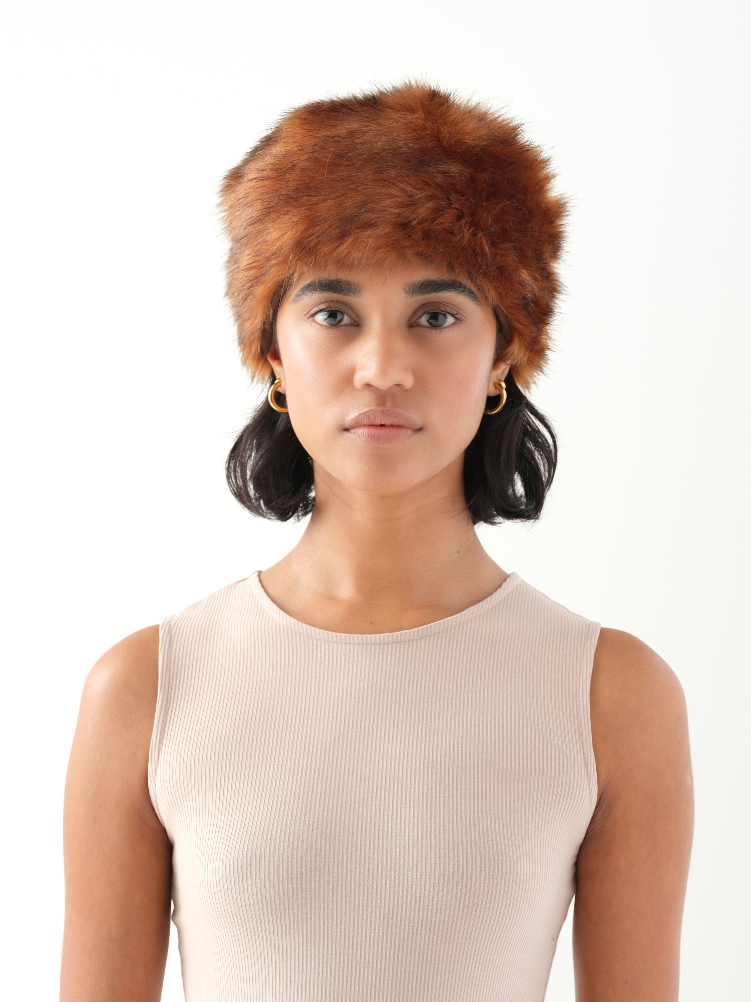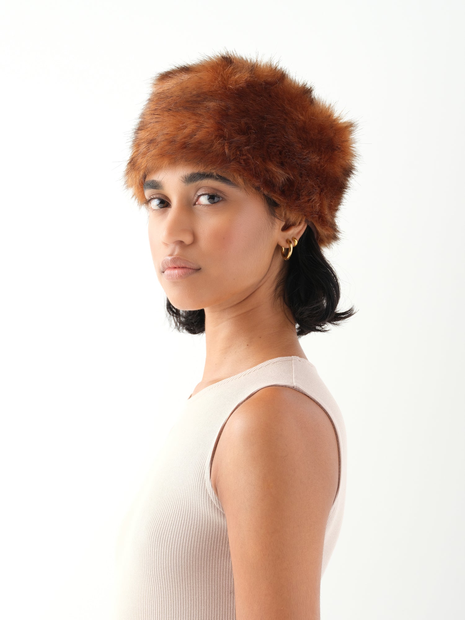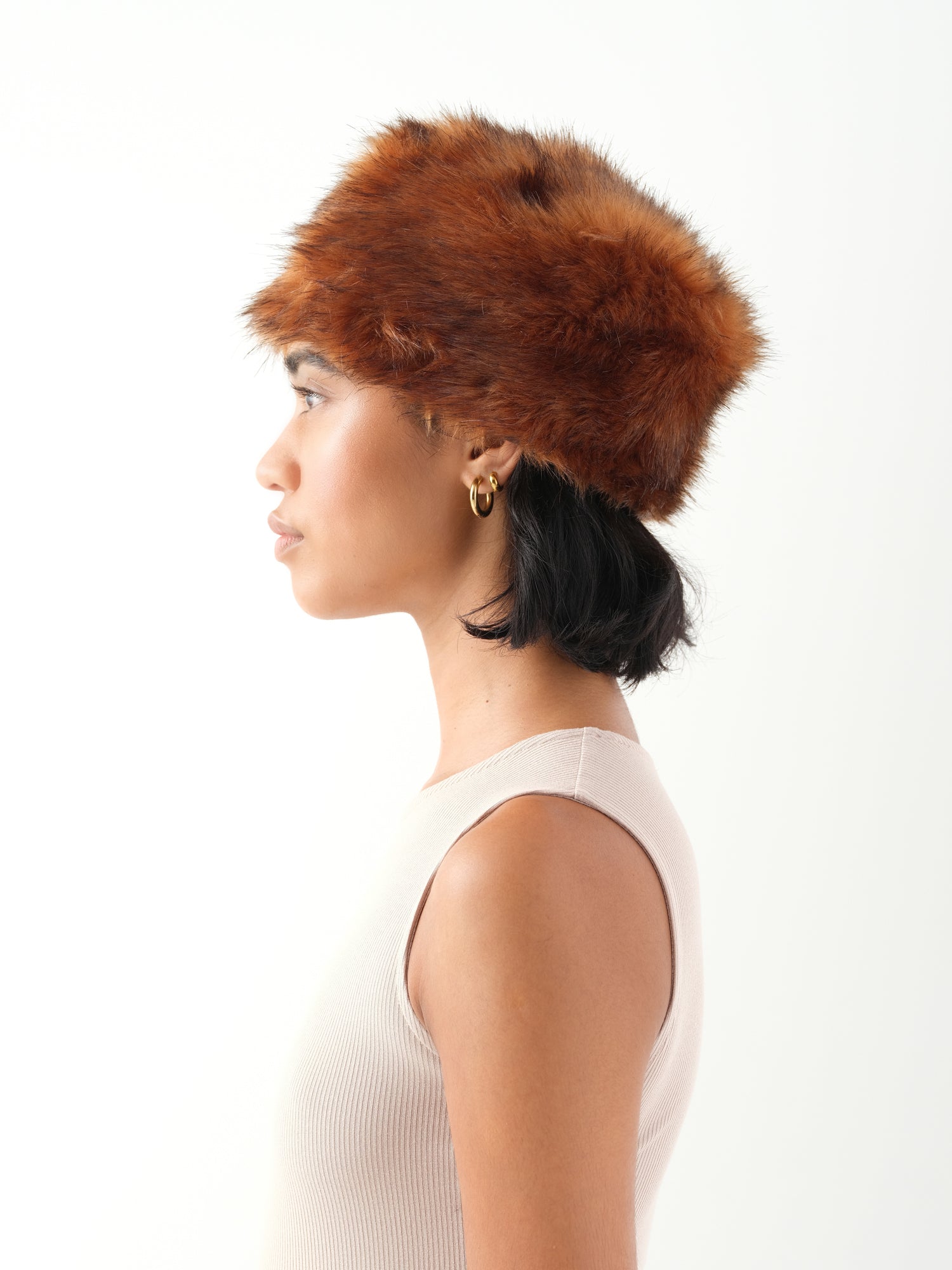 With its structured construction and timeless cossack hat style design, the Natasha Hat in Ginger is a go-to accessory this season and next.