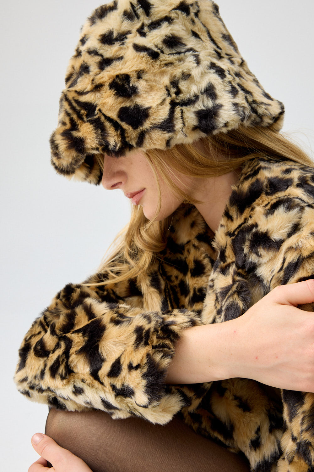 A timeless faux fur coat with a cosy shawl collar and satin lining for added comfort and sophistication.