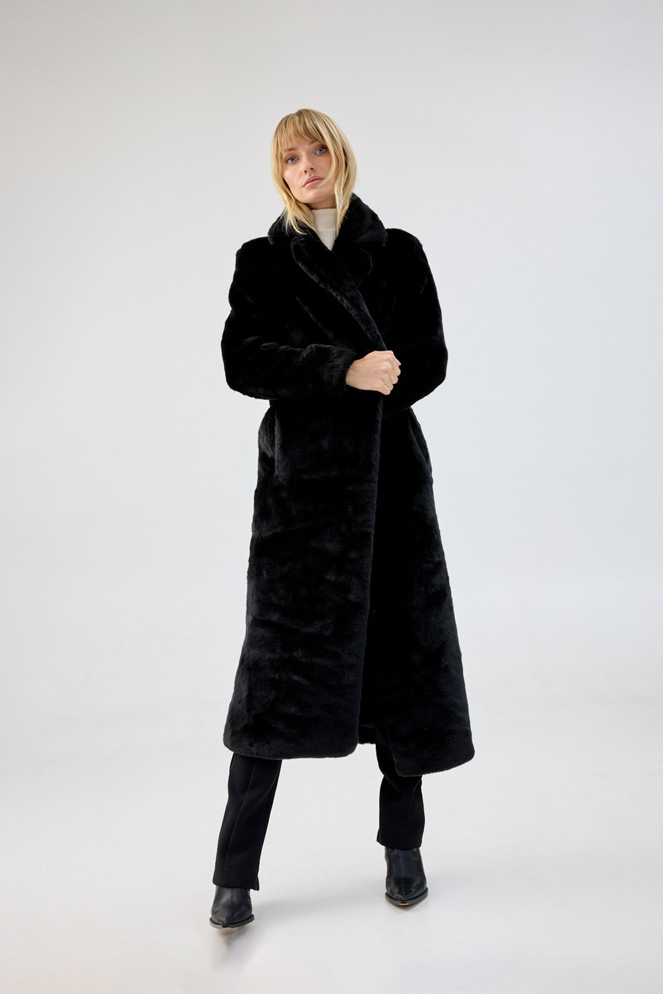 Crafted from plush faux fur, the Black Bird Coat features notched labels and a longline length to elevate your winter ensembles. This timeless tailored coat brings luxurious warmth, and is a must-have investment piece to return to season after season.