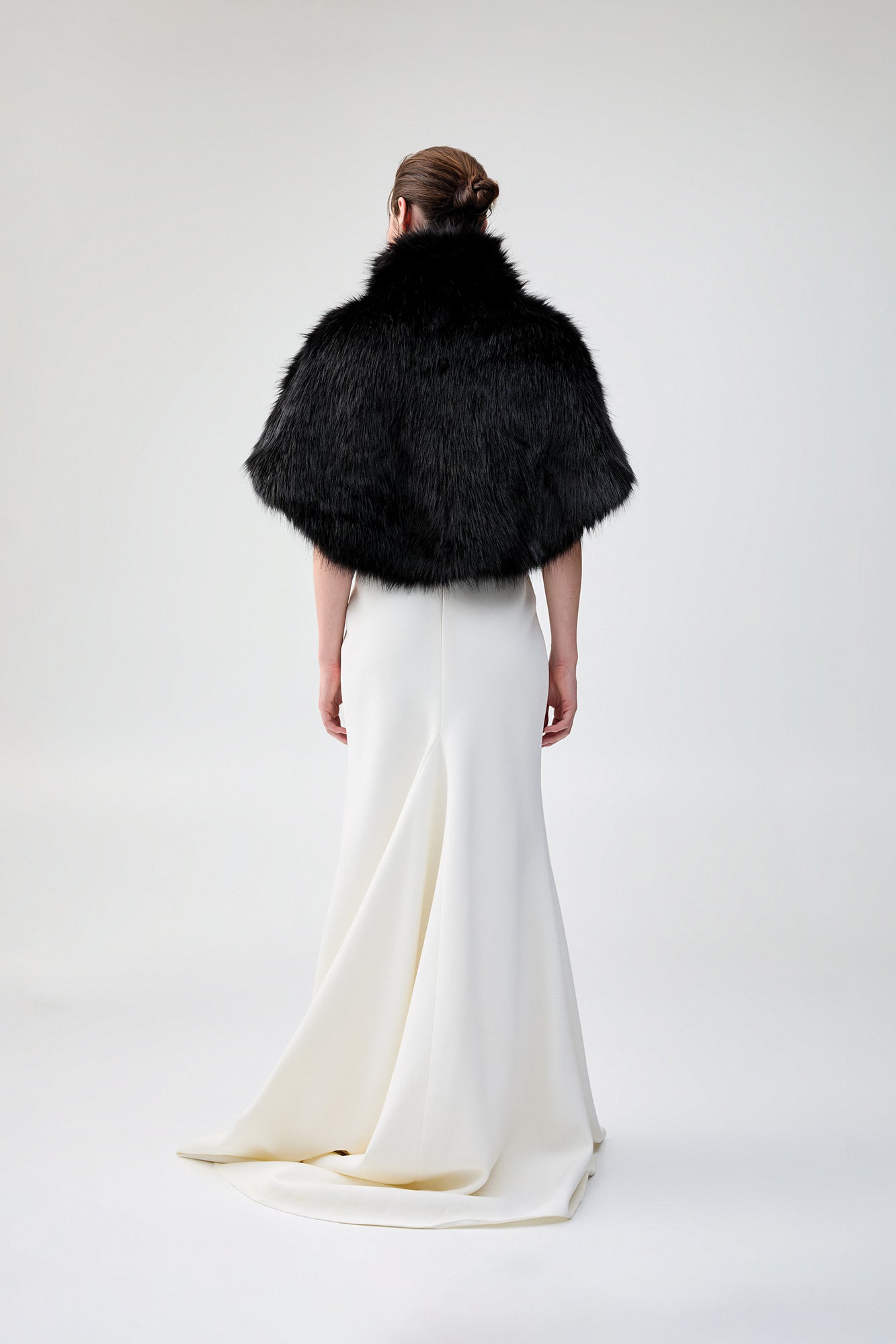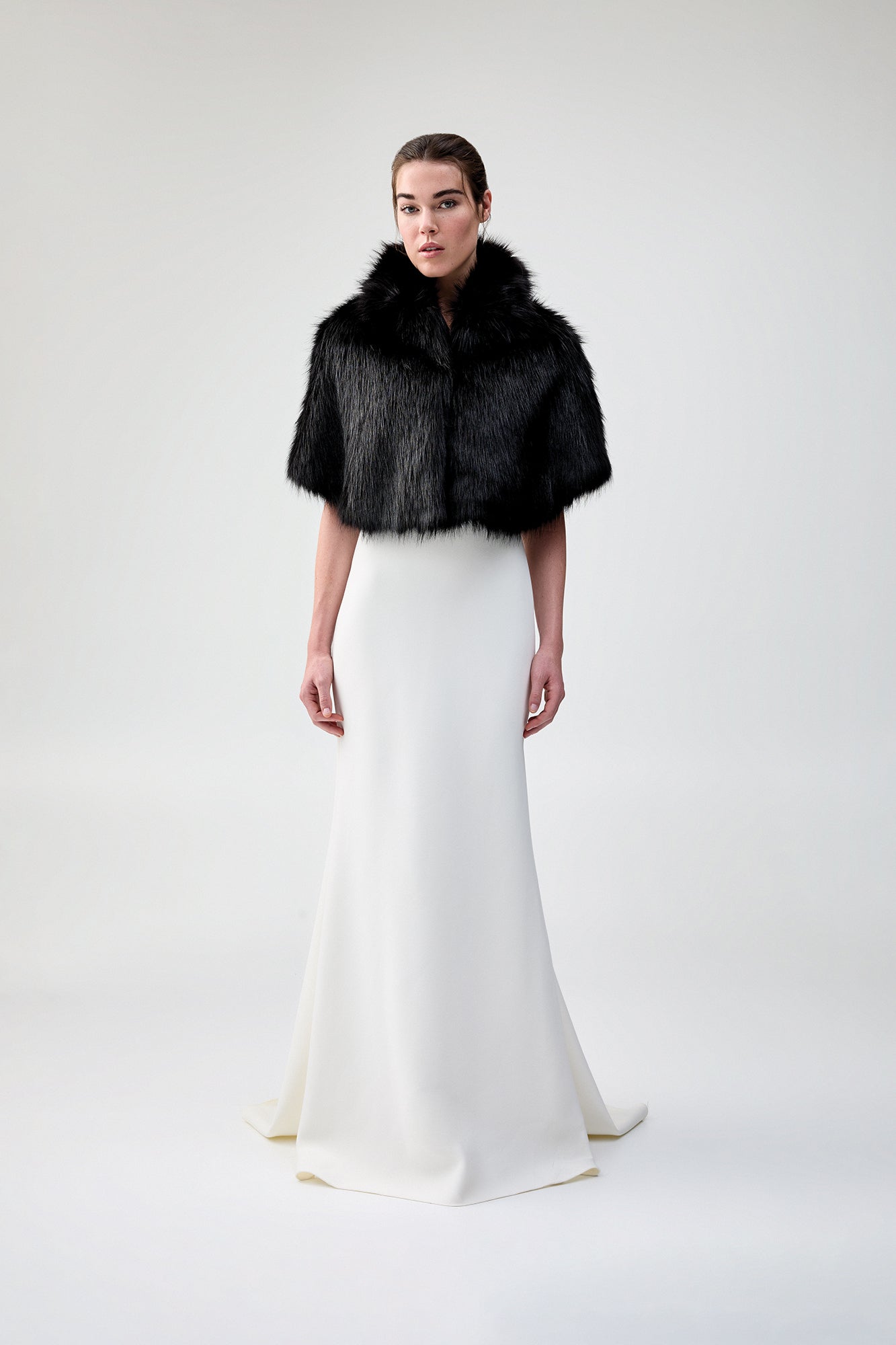 Luxurious and chic, this gorgeous cape is made from the most premium faux fur and features a wide collar with a concealed hook & eye closure in the front.