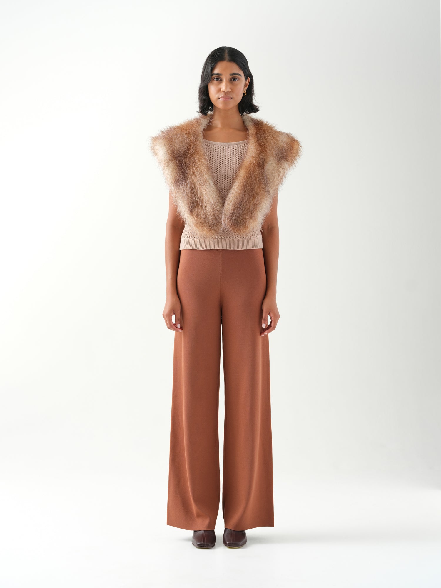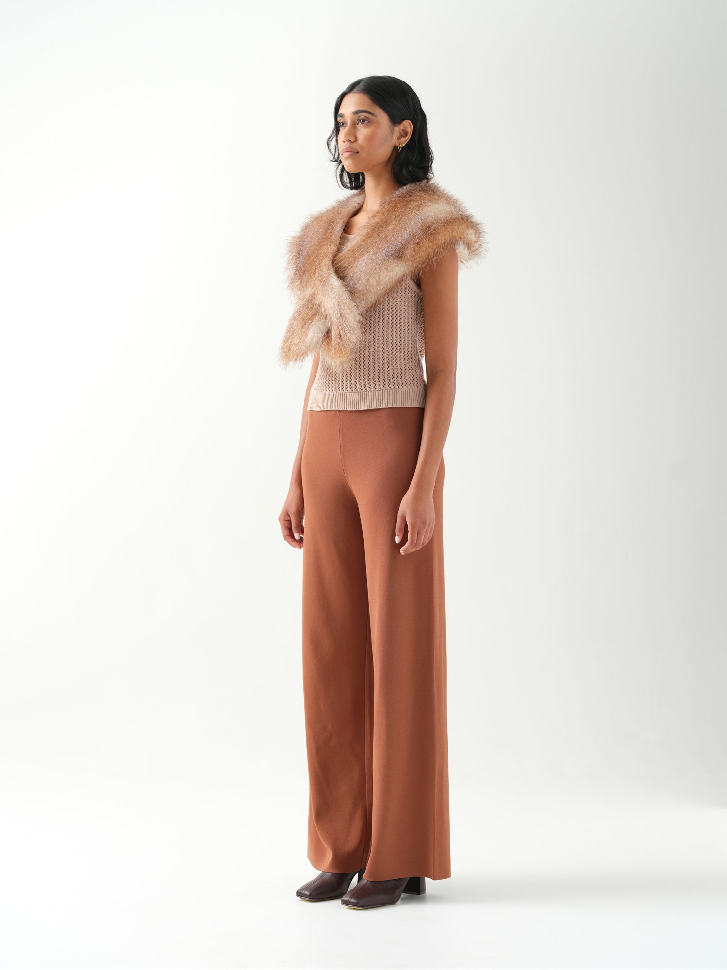 A minimalist staple with maximum impact. The Thread-Through Scarf in Desert is constructed from dense, high-pile faux fur, delivering warmth and structure in equal measure. Its classic silhouette make it an enduring cold-weather companion.