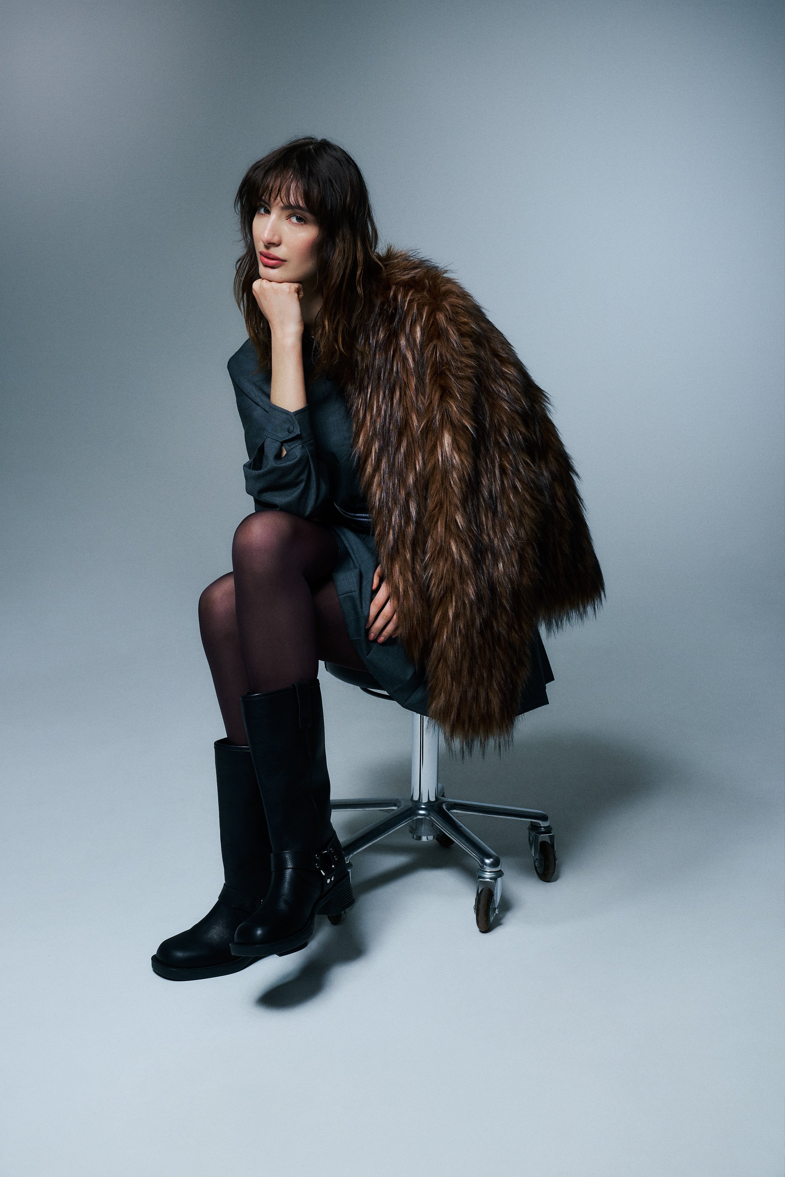 A timeless faux fur coat with a cosy shawl collar and satin lining for added comfort and sophistication.