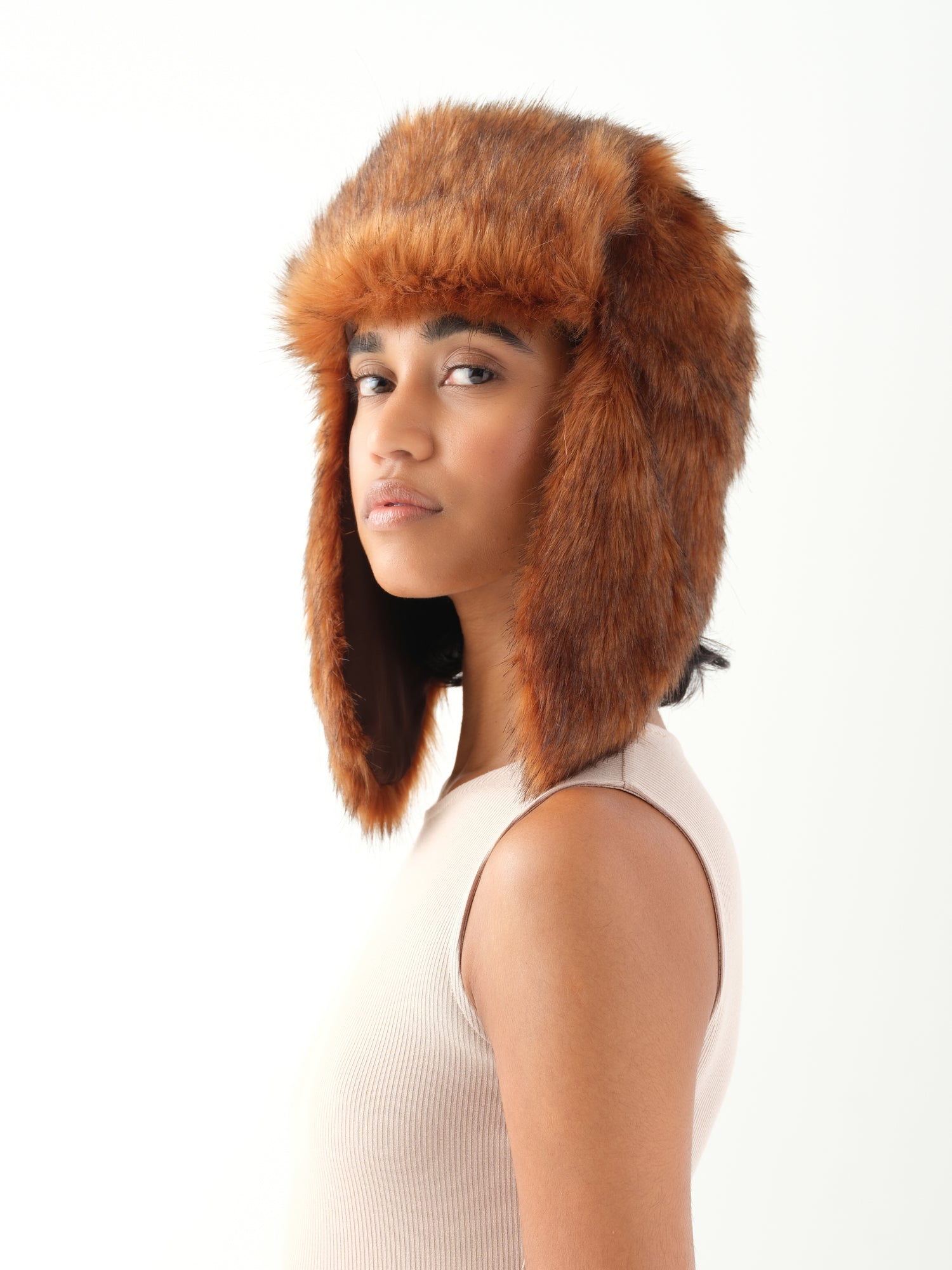The Wright Hat in Ginger is a sculptural take on the classic trapper silhouette. Crafted from dense, short-pile faux fur with soft satin lining, this piece offers substantial warmth and modern edge. A functional cold-weather staple designed to elevate utilitarian styling.